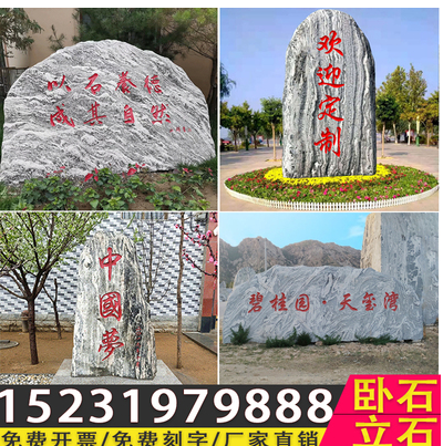 大型景观石泰山石雪浪自然天然石公司村牌标志刻字户外公园晚霞红